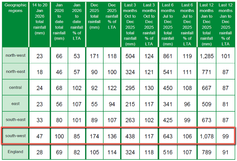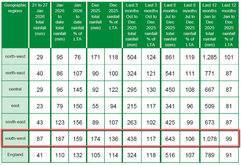 [Update – January 31st]Here’s the data from the EA’s rainfall and river flow summary for the week ending January 27th: