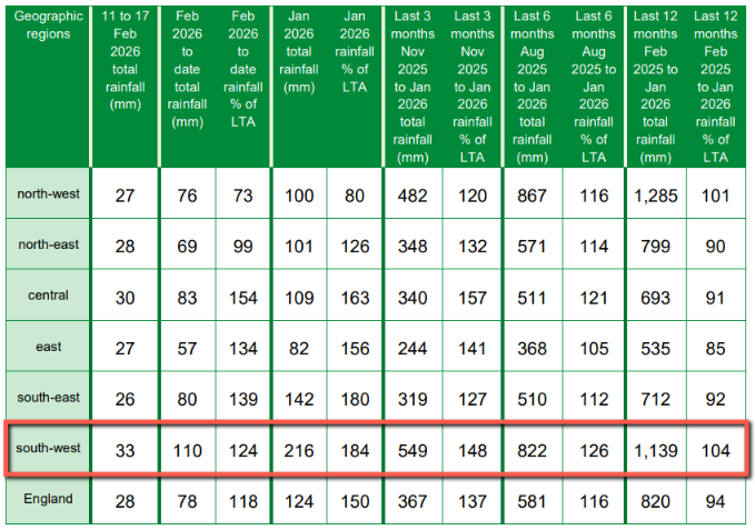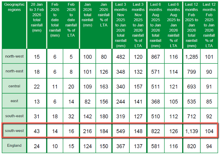 Here’s the EA’s rainfall data for the week ending February 3rd:
